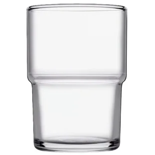 Komplet 6 szklanek Hill z hartowanego szkła, o pojemności całkowitej 200 ml każda. Klasyczny kształt szklanki został przełamany poprzez połączenie dwóch średnic naczynia.