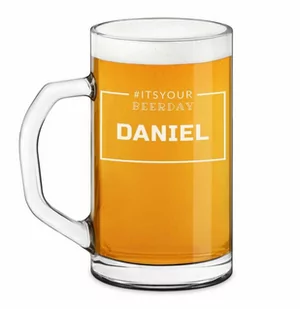 Duży kufel z grawerem dla piwosza na urodziny Jego urodziny są zawsze świętem piwa? Zbliża się jego osiemnastka ? A może już za kilka dni jego imieniny ? Szukasz prezentu dla piwosza ? Nie wiesz, co będzie idealne dla imprezowicza na niecodzienną okazję ? Spersonalizowany kufel na piwo to doskonały prezent dla każdego smakosza piwa. Ten oryginalny duży kufel z grawerunkiem posiada pojemność równą 640 ml , więc zmieści się w nim nieco więcej niż standardowa butelka złocistego napoju. Takie szklane naczynie stanie się atrybutem prawdziwego kibica i kinomana , oglądającego mecze ukochanej drużyny piłkarskiej. Dopasuj podarek do hobby i zawodu bliskiej osoby! Wybierz projekt grawerunku i zmodyfikuj go, tworząc spersonalizowany upominek dla bliskiego mężczyzny na parapetówkę i inne nadzwyczajne wydarzenie. wymiary - 16 cm x 13 cm średnica - 8,8 cm pojemność - 0,64 l materiał - szkło gratis grawerunek z dedykacją dla piwosza KUFG-034