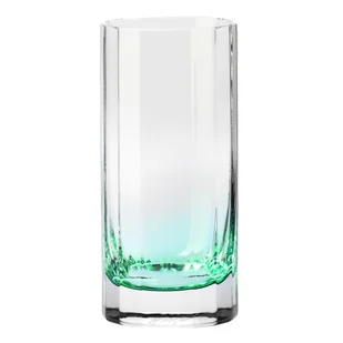Naczynie zostało uformowane ręcznie przez mistrzów hutnictwa z najwyższej jakości bezołowiowego kryształu, co gwarantuje mu nieskazitelny blask oraz jedwabistą gładkość powierzchni. Klasyczna, prosta bryła osadzona na masywnym dnie zyskuje pewną, stabilną formę, idealnie wyważoną w dłoni. W sercu grubego szkła zatopiono szlachetną kroplę koloru Szmaragd – głębokiej zieleni, która promieniuje spokojem i przywodzi na myśl harmonię natury. Precyzyjne, geometryczne płaszczyzny zdobiące ścianki tworzą unikalną fakturę, która nie tylko zachwyca pod palcami, ale także spektakularnie rozprasza światło, wydobywając z napojów i lodu krystaliczne refleksy.