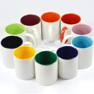 Kubek biały 11oz, wnętrze i ucho jasnoniebieskie klasa A+, średnica 8 cm wysokośĆ 9,5 cm Do sublimacji