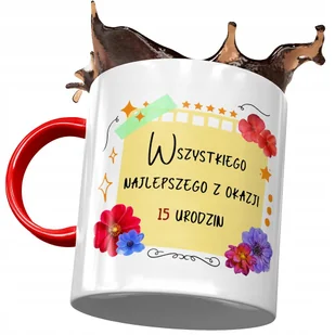 Kubek Czerwony na Urodziny 15 15ste 15-ste Prezent z Nadrukiem ze Zdjęciem+ Opakowanie na prezent (wzór 01)