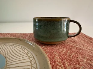 Poznaj niezwykły kubek wytoczony na kole garncarskim – wykonany z kropkowanej gliny i pokryty efektownym, zielonym szkliwem, które mieni się niczym krople rosy na leśnym mchu. Każdy kubek to unikat, stworz ...