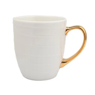 Kubek prezentowy Paski ze złotym uchem 420 ml biały