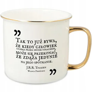KUBEK UCHO RANT ZŁOTY PORCELANOWY RETRO SUPER PREZENT WŁADCA PIERŚCIENI WZ
