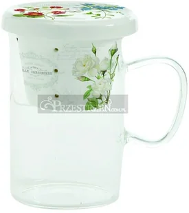 Kubek szklany z porcelanowym zaparzaczem i pokrywką, z kolekcji Romantic Natural, ozdobiony motywem kolorowych polnych kwiatów. Kubek jest wykonany ze szkła borokrzemowego. Jest zapakowany w pudełko z prześwitem.