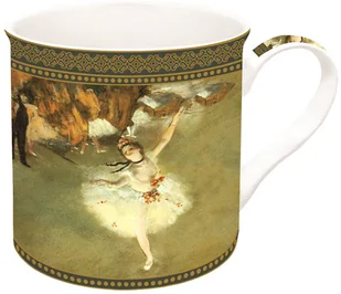 Kubek porcelanowy z motywem baletnicy ze słynnego obrazu Degasa z tańczącą baletnicą. Kubek jest zapakowany w pudełko z identycznym wzorem. Średnica kubka: 8. 5 cm, wysokość: 9 cm Wymiary pudełka: