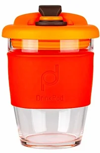 Pioneer DrinkPod szklany kubek do kawy wielokrotnego użytku, nie zawiera BPA, 340 ml, 12 oz VOLCANO, czerwony
