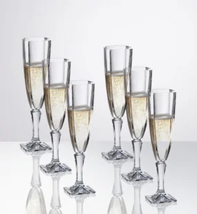 Elegancki kieliszek do szampana o unikatowym wyglądzie z krzyształowego szkła z Bohemii. Opakowany w oryginalny, ozdobny, granatowy karton. Średnica: 5,4cm Wysokość: 21,2cm Pojemność: 140ml Pakowane 6szt/box, 48szt/krt Dostępny na sztuki, oryginalny granatowy karton dostępny tylko przy zakupie 6 sztuk.