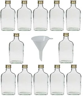 Viva artykuły gospodarstwa domowego - 12 x mała szklana butelka 200 ml z nakrętką, nadaje się jako piersiówka, butelka na wódkę i likier, (w zestawie lejek Ø 7 cm)