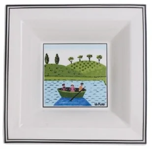 Design Naif to niezwykle oryginalna kolekcja naczyń zdobionych rysunkami Gerarda Laplau - przedstawiciela francuskiego malarstwa naiwnego. Scenki wiejskich pejzaży umieszczone na białej porcelanie rzeźbionej w rustykalne kształty przenoszą użytkowników w wiejskie krajobrazy, nadając kolekcji radosnego charakteru od ponad 30 lat. Wielbiący sztukę ludową w nowoczesnym wydaniu będą usatysfakcjonowani, korzystając z zastawy stołowej Design Naif. Kwadratowa miska z kolekcji Design Naif Gifts, ozdobiona pięknym motywem, z kultowej kolekcji Design Naif marki Villeroy&Boch, może stać się idealnym prezentem. Na kwadratowej misce mogą znaleźć się zarówno świeże owoce, jak i słodkie ciasteczka.