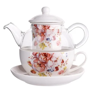 Zestaw do herbaty Tea For One marki ALTOM DESIGN to część kolekcji Scarlett łączącej porcelany ze szkłem żaroodpornym - jeden z najnowszych trendów w świecie aranżacji. Zestaw składający się z porcelanowego czajniczka z pokrywką 300 ml, zaparzacza oraz filiżanki 200 ml zapakowany jest w kolorowe pudełko.