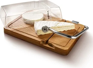 Krajalnica strunowa do sera miękkiego i półtwardego Petit Paris idealnie sprawdzi się w Twojej kuchni. W skład zestawu wchodzi struna (plus dwie dodatkowe), nakładany klosz z tworzywa sztucznego i podstawa z drewna dębowego. Boska oferuje nam przedmiot solidny i wytrzymały. Krajalnica to jednocześnie solidna deska do serwowania sera z drewna dębowego, która sprawdzi się na każdym spotkaniu i imprezie. Urządzenie jest wyjątkowo bezpieczne i łatwe w obsłudze. Klosz dopasowany rozmiarem do deski zapobiega wysychaniu i pomaga w przechowywaniu. Przed pierwszym użyciem deskę należy solidnie naoliwić i pozwolić by drewno chłonęło olej przez kilka dni. Potem czynność należy powtarzać co jakiś czas. Deskę myjemy ręcznie z dodatkiem łagodnych detergentów. Całość zapakowana jest w kartonowe pudełko. Kolekcja Petit ParisWymiary całości wysokość - 9 cm długość - 30 cm szerokość - 23 cmWymiary deski wysokość - 3 cm długość - 28,5 cm szerokość - 19,5 cmWymiary elementu tnącego długość - 18 cmWaga 1.926 kgMateriał stal nierdzewna drewno dębowe tworzywo sztuczne