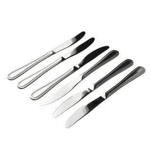 Noże do steków Chamomile, komplet 6 noży o długości 22 cm, wykonane ze stali nierdzewnej. Idealne do precyzyjnego krojenia mięsa. Solidne, srebrne, lekkie – ważą tylko 0,380 kg. Sprawdzą się w każdej kuchni, gwarantując wygodę i skuteczność.