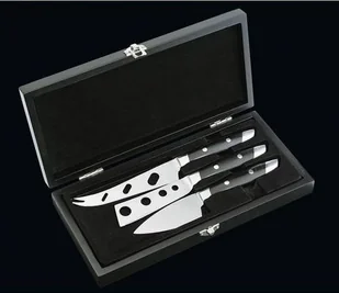 Elegancki komplet składający się z trzech specjalistycznych noży do krojenia serów to wyjątkowa propozycja niemieckiej marki Cilio. W skład zestawu wchodzą trzy noże - do serów miękkich, do serów twardych oraz do parmezanu. Całość zamknięta jest w przepięknym, eleganckim, czarnym pudełku, które zostało wykonane z najwyższą precyzją i dbałością o każdy szczegół. Noże posiadają ostrza z najwyższej jakości, trwałej stali nierdzewnej, co zapewnia wieloletnie użytkowanie. Dzięki wygodnym rączkom, wszystkie noże dobrze leżą w dłoni, a krojenie nimi przebiega płynnie i niezwykle łatwo, a przy tym jest bezpieczne. Tern praktyczny i elegancki zestaw to doskonały pomysł na prezent dla każdego wielbiciela serów.