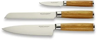 ECHTWERK 3-częściowy zestaw noży damasceńskich, nóż kuchenny/nóż szefa kuchni, nóż do chleba z ząbkowaną krawędzią, nóż do obierania/nóż do warzyw, ergonomiczna rękojeść z drewna Pakka