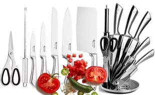 Zestaw noży z ostrzałką i nożyczkami w obrotowym stojaku Edenberg EB-600 Noże wykonane są z wysokiej jakości, niezwykle twardej stali węglowej. Dzięki tej właściwości tępią się bardzo wolno, a po naostrzeniu tną jak przysłowiowa brzytwa. Noże Edenberg to niezastąpieni przyjaciele każdej Szefowej i Szefa kuchni. Noże wykonane są z jednego kawałka metalu przez co są bardzo mocne i trwałe. Ergonomiczne rękojeści ułatwiają pewny chwyt.