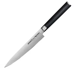 Noże Samura wykonane są z najlepszej japońskiej i szwedzkiej stali, hartowanej do 58 - 61 HRC. Ostrza mają japoński kształt i łagodne zwężenie od czubka, co zapewnia im fantastyczną wydajność cięcia. Noże Samura są ostrzone pod kątem 17 stopni. Jest to więcej niż w przypadku noży japońskich, ale mniej niż w przypadku noży europejskich. Do produkcji uchwytów użyto najlepszych, nowoczesnych materiałów: