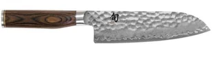 Nóż typu Santoku, ekskluzywnej, japońskiej firmy KAI, został wyposażony w dwustronne ostrze o długości 18 cm. Ostrze tej długości i jego kształt czyni nóż uniwersalnym, podobnie jak nóż szefa kuchni. Niezastąpiony dla mniejszych kuchni oraz dla osób z mniejszymi dłońmi. Świetnie sprawdzi się podczas krojenia warzyw, owoców oraz mięsa. Seria noży SHUN Premiere, swoim wyglądem przywodzi na myśl ręcznie kute noże ze starożytnej Japonii, co nadaje im wyjątkowego charakteru.