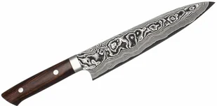 Profesjonalny japoński nóż szefa kuchni Takeshi Saji 21 cm. Najbardziej wszechstronny nóż kuchenny, przeznaczony do krojenia, siekania, szatkowania i plastrowania rozmaitych produktów. We wprawnych rękach poradzi sobie z porcjowaniem drobiu, usuwaniem kości z mięsa czy filetowaniem ryb. Średniej długości ostrze pozwala kroić większe płaszczyzny i gwarantuje pełną kontrolę nad nożem. Dane techniczne: