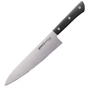 Micarta, G10, drewno stabilizowane, tworzywo sztuczne z delikatną powierzchnią, Kraton i kompozyty. Nóż szefa kuchni Samura Harakiri 20 cm to ulubione narzędzie każdego profesjonalnego kucharza. Nóż ma szerokie i długie ostrze, odpowiednie do krojenia dużych produktów spożywczych - mięsa, ryb, kapusty itp. Ten nóż jest częścią zestawu startowego dla szefów kuchni. Główne zalety noży Samura: