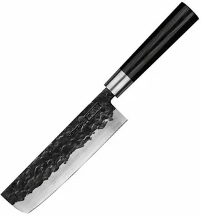 Micarta Waga: 247gTradycyjny japoński tasak Nakiri z serii Blacksmith to specjalny nóż kuchenny do warzyw. Idealnie nadaje się do drobnego siekania i krojenia. Sczerniałe ostrze noża wygląda jak księżycowa powierzchnia pełna kraterów. Tworzy specjalną poduszkę powietrzną podczas krojenia i zapobiega przywieraniu kawałków warzyw do ostrza.