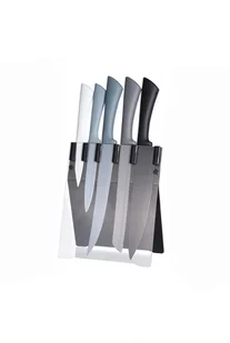 Elegancki i praktyczny zestaw noży ma wszechstronne zastosowanie w kuchni. Noże posiadają ergonomiczną, kolorową rękojeść Soft Touch, ostre ostrze ze stali nierdzewnej i gładką powierzchnię. Są bardzo trwałe i łatwe w utrzymaniu. Przechowywane w designerskim czarnym stojaku. Zestaw składa się z 5 różnych noży.