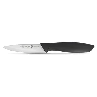 ZWIEGER GABRO NÓŻ DO WARZYW I OWOCÓW 9,5 CM Nóż do warzyw i owoców GABRO to nóż wykonany z niemieckiej stali nierdzewnej (X50CrMoV15) wyróżniający się nowoczesnym wzornictwem. Stal ta charakteryzuje się niezwykłą twardością i wytrzymałością, co przekłada się na długą żywotność noża jak i ostrza, które ostrzone jest ręcznie w podwójnym procesie gradacji, przez co zapewnia precyzję krojenia oraz łatwość ostrzenia. Rękojeść wykonana z tworzywa sztucznego zapewnia ergonomię i wygodę użytkowania. Dodatkowo uchwyt pokryty jest powłoką antybakteryjną (tlenkiem srebra) dającą ochronę przed bakteriami i grzybami. Ten mały, niepozorny nóż, tak naprawdę okazuje się niezbędnym narzędziem każdego pasjonata przygód kuchennych.