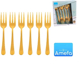 Komplet komplet 6 widelczyków deserowych wykonanych ze stali 18/0 w kolorze złota. Klasyczny, delikatny model, bez zdobień. Synonim piękna i elegancji, hołdujący prostej stylistyce uczyni Twój stół niezwykle stylowym i eleganckim. Jeśli cenisz niewymuszony szyk oraz subtelność, ten model sztućców został stworzony właśnie dla Ciebie. Amefa Austin 1410 Trend widelczyki złoto