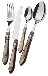 Casa Bugatti Bugatti zestaw sztućców 24-częściowy zestaw ze stali nierdzewnej 18/10 (DE) Oxford pierścionek srebrny z masy perłowej Onyx uchwytu OXBOM-S3250