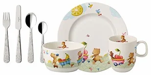 Villeroy & Boch Hungry as a Bear sztućce dla dzieci, 7 elementów, porcelana premium/stal nierdzewna, nadają się do mycia w zmywarce, białe/kolorowe