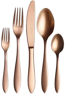 Zestaw sztućców dla 4 osób. Składa się z 20 elementów: łyżek, widelców, noży, łyżeczek i widelczyków. Sztućce zostały wykonane ze stali nierdzewnej barwionej wgłębnie. Nadają się do mycia w zmywarce.