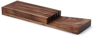 Organizer na noże wykonany z wysokiej jakości twardego drewna. Materiał: akacja. Odpowiedni do szuflad kuchennych, możliwość zastosowania większej ilości organizerów obok siebie. Dla 5 noży. Olejowana powierzchnia w celu ochrony drewna i wspierania jego właściwości antybakteryjnych. Szczeliny odpowiednie dla dużych noży.
