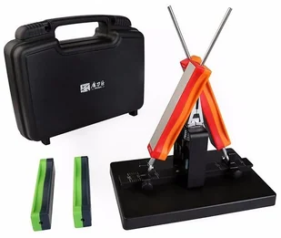 System ostrzałek do precyzyjnego naostrzenia każdego rodzaju noża. W komplecie są 4 rodzaje kamieni diamentowych o gradacjach 360/600/800/1000. Ostrzałka pozwala na wybór kąta ostrzenia noża w zakresie od 15° do 30°Dane techniczne: Typ ostrzałki - ręcznaMateriał ścierny - diamentGradacje diamentów - 360/600/800/1000. . .