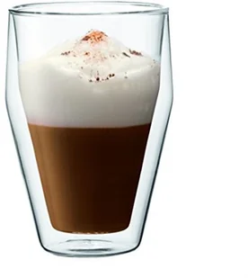 - zestaw 2 szklanek do napojów i deserów, geometryczna forma, - wykonane z ręcznie dmuchanego szkła borokremowego, posiadają podwójne izolujące ścianki, - w dnie silikonowy otwór wyrównujący ciśnienie, - można myć w zmywarce, używać w mikrofalówce, w piekarniku (do 180°C), a także układać w stosy.
