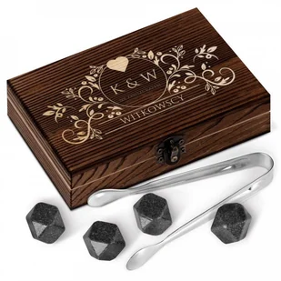 Kamienie do whisky kostki w drewnianym opakowaniu z grawerem dla pary na ślub rocznicę parapetówkę