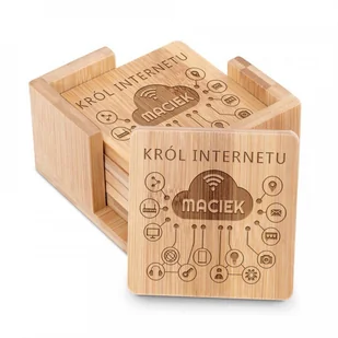 Murrano Podkładki bambusowe pod piwo kawę zestaw x6 grawer król Internetu PDK-BMB-022