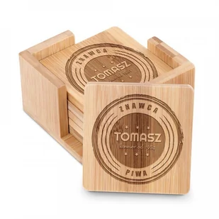 Podkładki bambusowe pod piwo zestaw x6 z nadrukiem dla piwosza na imieniny