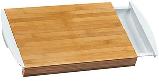 Bambusowe deski do krojenia są ponadto w 100% ekologiczne i szybkoschnące. W przypadku genialnego połączenia deski z wysuwanymi po obu stronach tacami zyskujemy 2 funkcje produktu w jednym i tym samym zaoszczędzamy miejsce do przechowywania. Wysuwane spod deski białe tace znajdą zastosowanie do zrzucania pokrojonych składników. Ponadto komplet ten może posłużyć jako zestaw do serwowania przekąsek na stół.