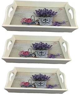 GMMH Drewniana taca lawendowa zestaw 3 szt. LN47-4 taca do serwowania taca do łóżka taca drewniana płyta do serwowania