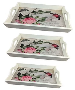 GMMH Drewniana taca motyle różowa zestaw 3 szt. LN47-2 taca do serwowania taca drewniana taca do serwowania