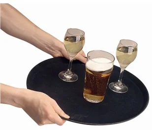 Kristallon Okrągła taca antypoślizgowa czarna 356 mm talerz do serwowania z włókna szklanego