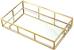 PuTwo Taca z lustrem, w stylu vintage, metalowa, lustrzana, dekoracyjna, prostokątna, jako toaletka, do przechowywania, kolor złoty