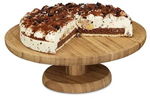 Relaxdays Okrągły patera na tort, 33 cm, wykonana z bambusa, z podstawą, wys. x śr.: ok. 11,5 x 33 cm, naturalny 10020545
