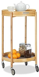 Relaxdays wózek do serwowania z bambusa, okrągły wózek o taca do serwowania, 2 poziomy, 4 Kółka, 80 cm wysokości, 45 cm, naturalny/szary 10021494