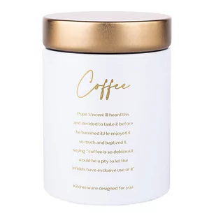Metalowy, biały pojemnik o matowym wykończeniu z elegancką, złotą pokrywką. Dzięki niemu kawa zachowa świeżość dłużej niż w standardowym opakowaniu producenta. Puszka Coffee oraz Sugar i Tea z tej samej serii świetnie prezentują się na kuchennej półce. Stylowa puszka dopasuje się do różnych aranżacji kuchennych, zarówno tych klasycznych, jak i nowoczesnych. Pomagają utrzymać żywność w świeżości.