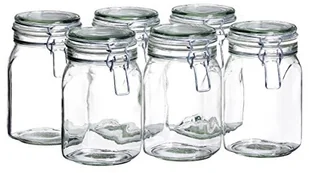 Mäser 925340 Gothika, słoiki do konserwowania 1 l, zestaw 6 sztuk, słoiki do przechowywania z pokrywkami i drucianymi zaciskami do hermetycznego przechowywania, szkło, przezroczyste