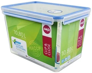 rozmiar Maxi dla całej rodziny, szczelny transport płynów w torbie dzięki innowacyjnemu uszczelnieniu świeżościMożna myć w zmywarce, pokrywka i pudełko można używać w kuchence mikrofalowej, można zamrażać - zakres temperatur od - 40 stopni do + 110 stopniZakres dostawy: 1 pojemnik do przechowywania żywności Emsa z pokrywką, Pojemność: 10,8 litra, - Wymiary: 32,7 x 22,7 x 21,5 cm (dł. x szer. x wys.), Kolor: przezroczysty/niebieski Pojemnik do przechowywania żywności CLIP & CLOSE, prostokątny, format maxi- bezpieczne w transporcie zamknięcie na klips- 100% higieny: