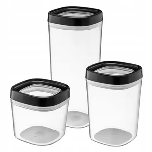 , SPECYFIKACJA: Pojemniki na żywność Materiał: tworzywo sztuczne Kolor: przezroczysty, czarny Liczba sztuk: 3 MAŁY POJEMNIK: