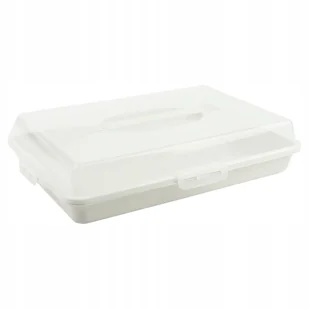 PROSTOKĄTNY POJEMNIK NA CIASTO ZAMYKANY 44x30x10CM KOLOR ECRU Z UCHWYTEM Opis przedmiotu: Ten praktyczny pojemnik na ciasto to idealne rozwiązanie dla miłośn...