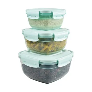 Komplet 3 pojemników do przechowywania żywności o pojemności od 0,5 l do 1,5 l. Wykonane z przezroczystego tworzywa sztucznego - wolnego od BPA. Idealne do p...